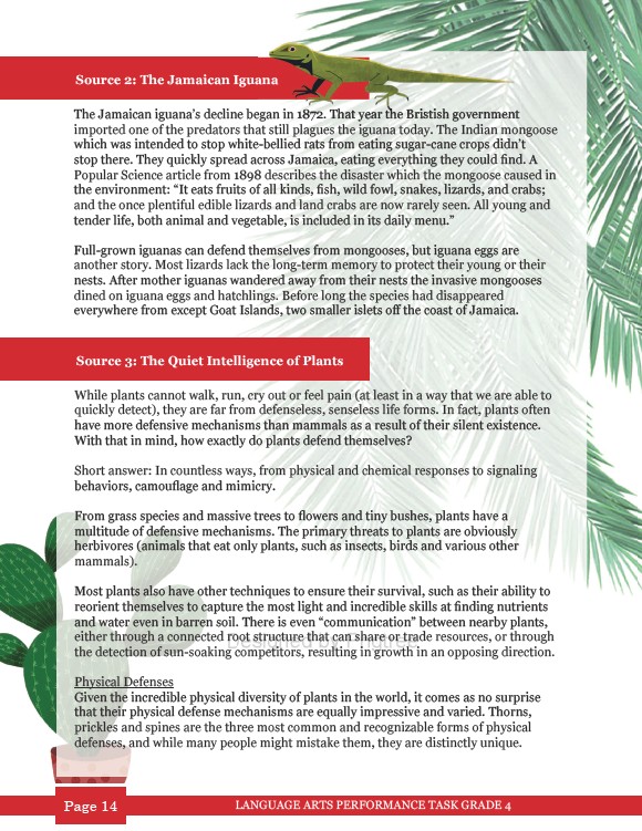 Page 14 LANGUAGE ARTS PERFORMANCE TASK GRADE 4