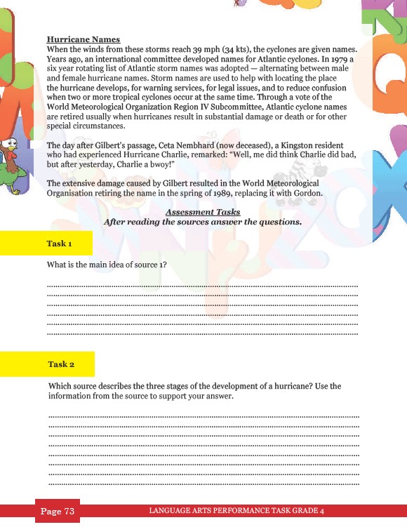 Page 73 LANGUAGE ARTS PERFORMANCE TASK GRADE 4