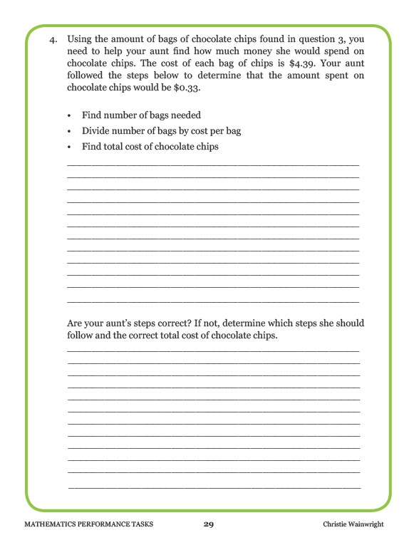 MATHEMATICS PERFORMANCE TASKS 29 Christie Wainwright