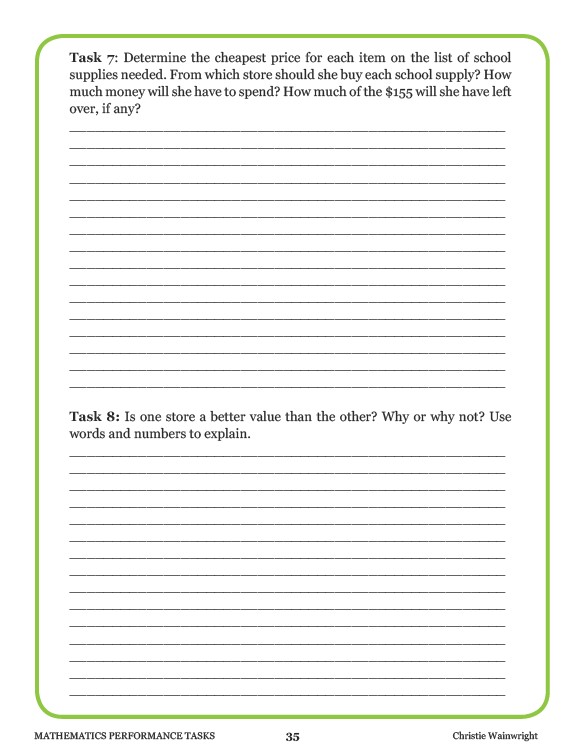 MATHEMATICS PERFORMANCE TASKS 35 Christie Wainwright