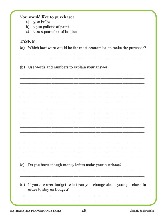 MATHEMATICS PERFORMANCE TASKS 48 Christie Wainwright