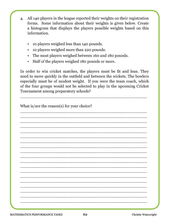 MATHEMATICS PERFORMANCE TASKS 62 Christie Wainwright
