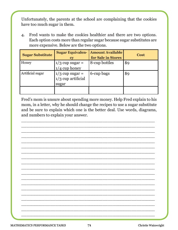 MATHEMATICS PERFORMANCE TASKS 71 Christie Wainwright