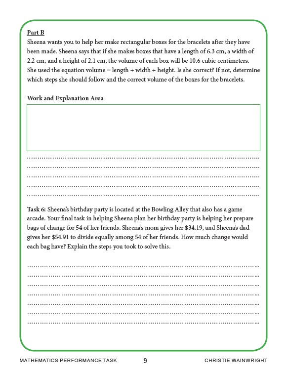 MATHEMATICS PERFORMANCE TASK 9 CHRISTIE WAINWRIGHT