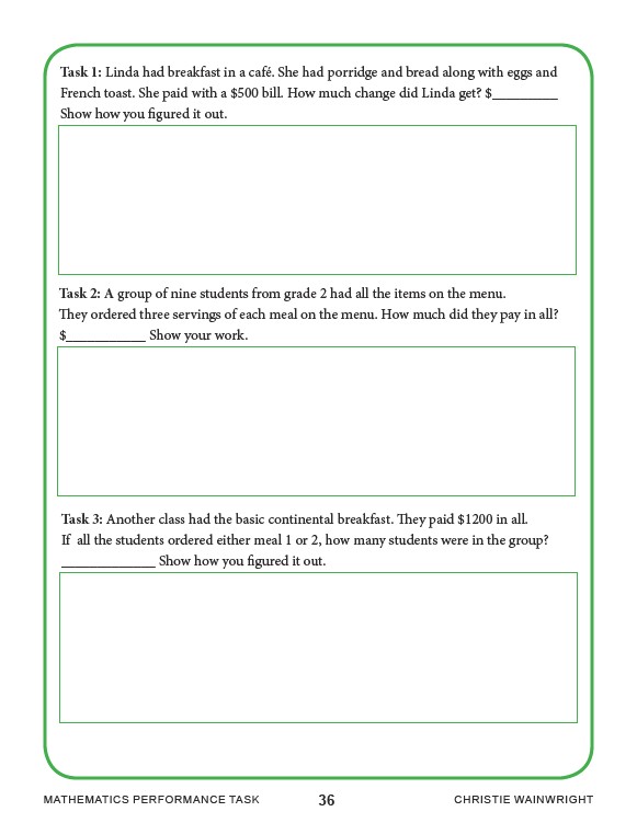 MATHEMATICS PERFORMANCE TASK 36 CHRISTIE WAINWRIGHT