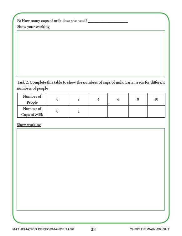 MATHEMATICS PERFORMANCE TASK 38 CHRISTIE WAINWRIGHT