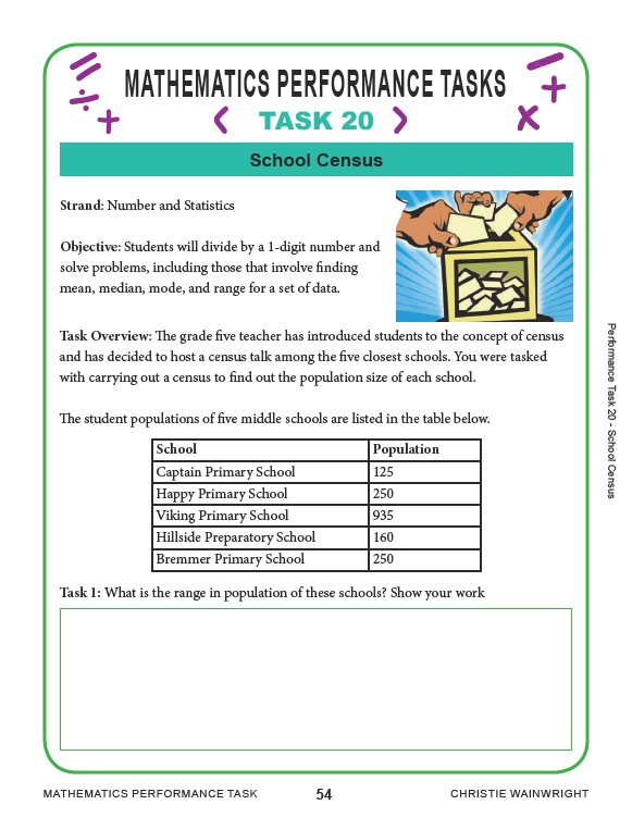 Task Overview: The grade five teacher has introduced students to the concept of census