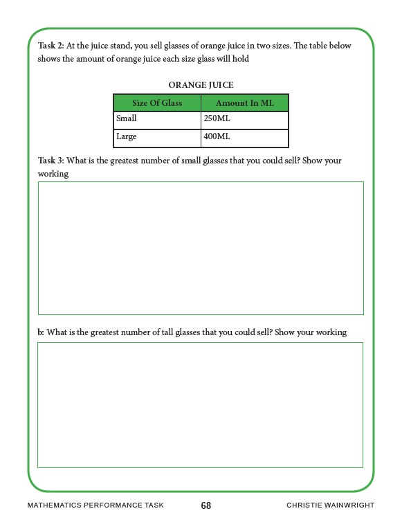MATHEMATICS PERFORMANCE TASK 68 CHRISTIE WAINWRIGHT
