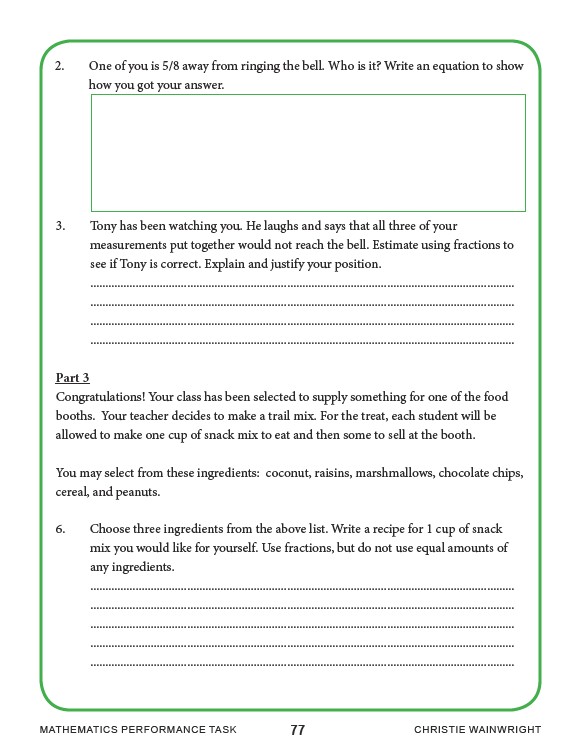MATHEMATICS PERFORMANCE TASK 77 CHRISTIE WAINWRIGHT