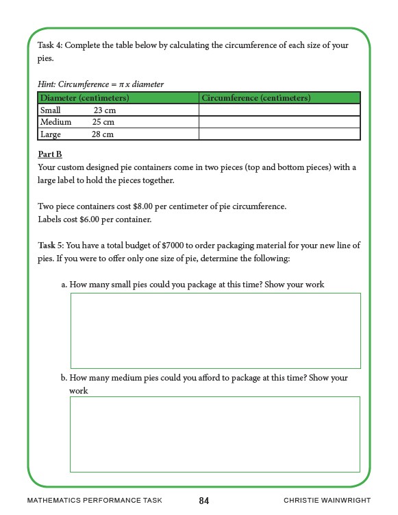 MATHEMATICS PERFORMANCE TASK 84 CHRISTIE WAINWRIGHT