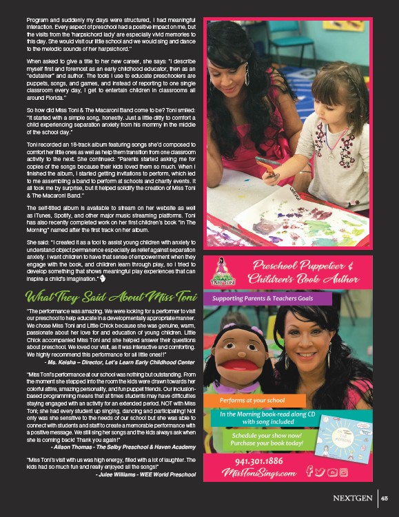 “Miss Toni’s performance at our school was nothing but outstanding. From