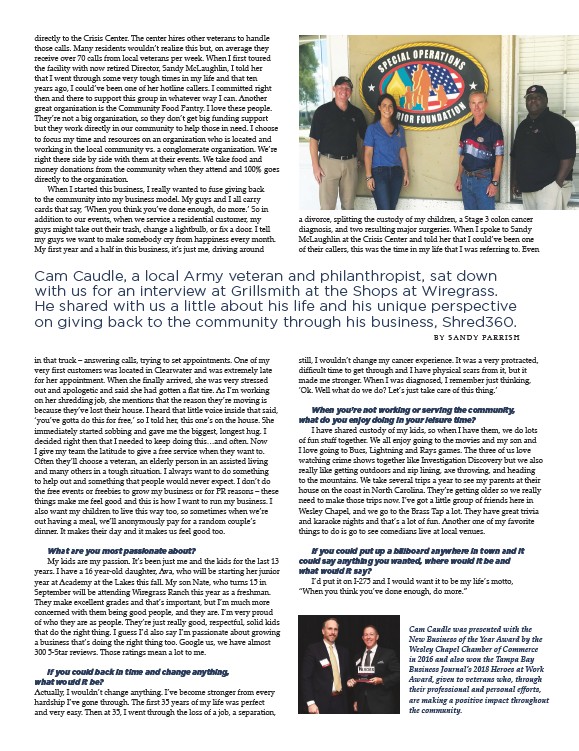 Cam Caudle, a local Army veteran and philanthropist, sat down