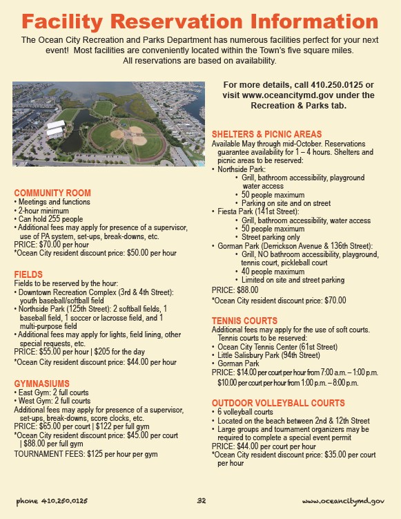 The Ocean City Recreation and Parks Department has numerous facilities perfect for your next