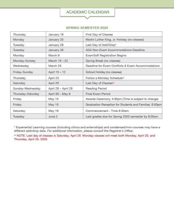 * Experiential Learning courses (including clinics and externships) and condensed/mini-courses may have a