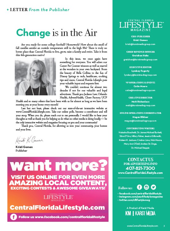 www.CentralFloridaLifestyle.com. Take our online polls, become a contributor and tell