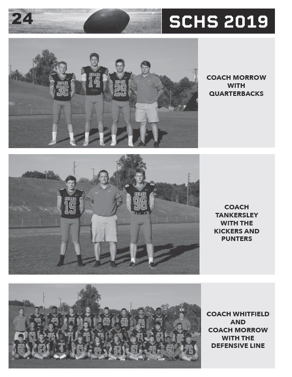 24 SCHS 2019 COACH MORROW WITH QUARTERBACKS COACH TANKERSLEY WITH THE KICKERS AND PUNTERS COACH WHITFIELD AND COACH MORROW WITH THE DEFENSIVE LINE