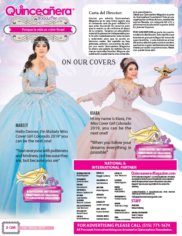 2019© Quinceañera Magazine®. Is a semestral publication. All materials