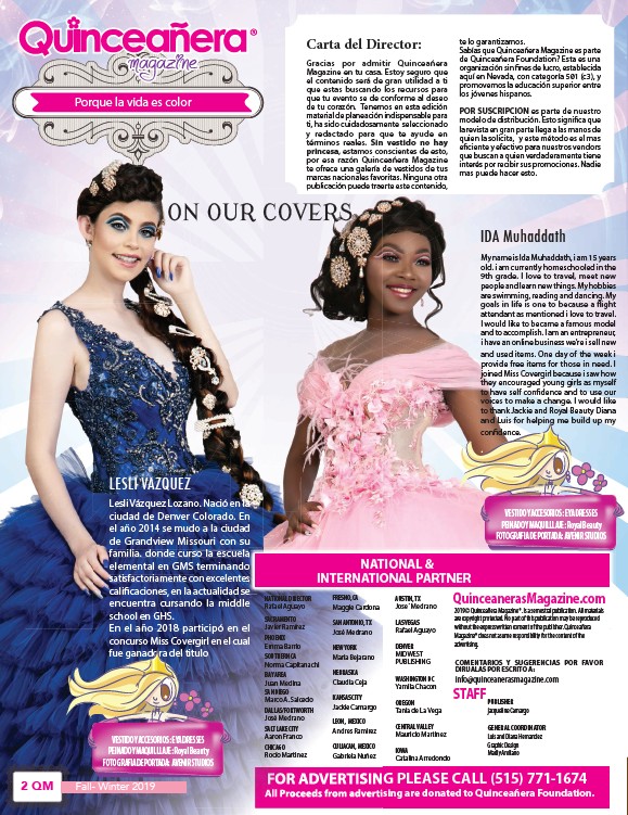 2019© Quinceañera Magazine®. Is a semestral publication. All materials