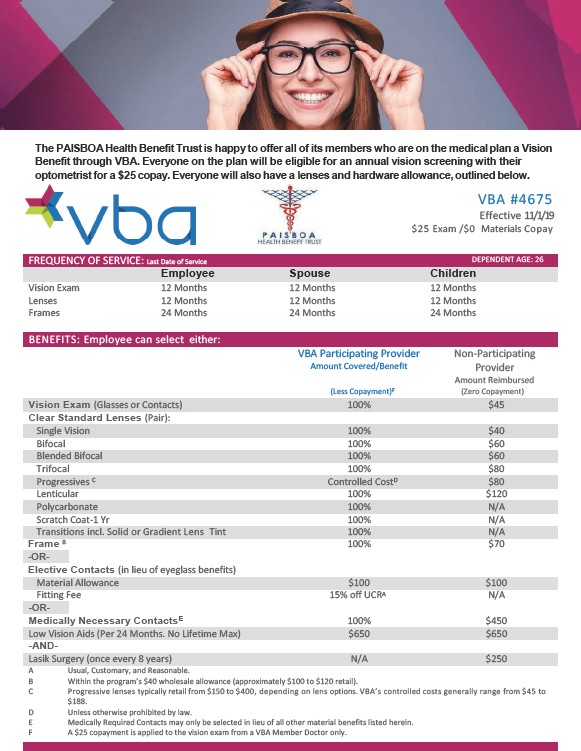 The PAISBOA Health Benefit Trust is happy to offer all of its members who are on the medical plan a Vision