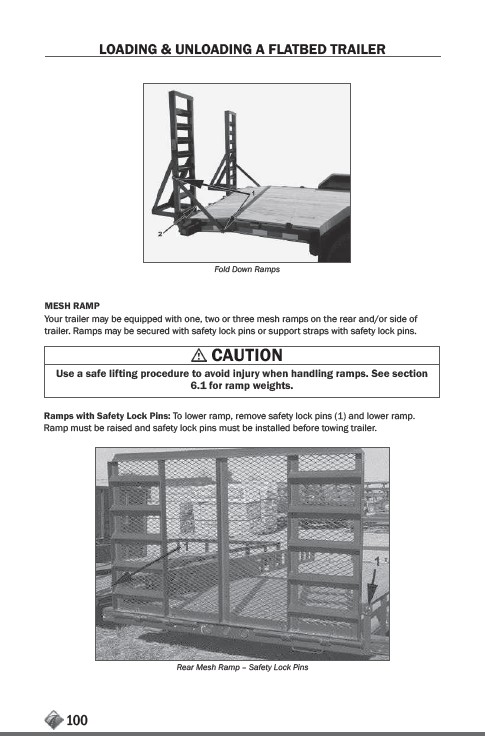 trailer. Ramps may be secured with safety lock pins or support straps with safety lock pins.