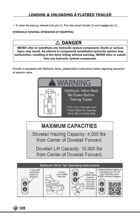 If trailer is equipped with Hydraulic Jacks, please follow instructions below regarding operation