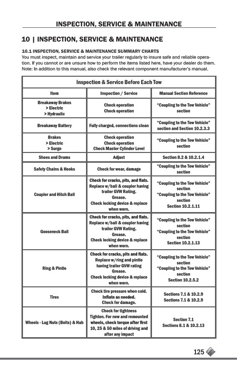 10 | INSPECTION, SERVICE & MAINTENANCE