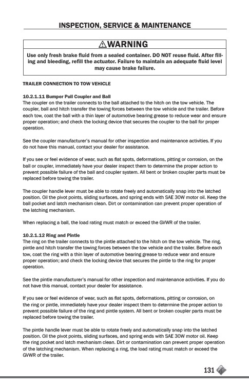the ring or pintle, immediately have your dealer inspect them to determine the proper action to