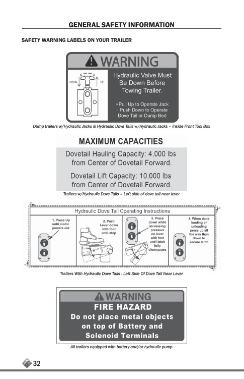 All trailers equipped with battery and/or hydraulic pump