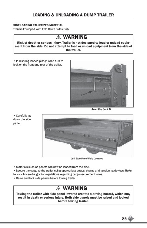 Towing the trailer with side panel lowered creates a driving hazard, which may