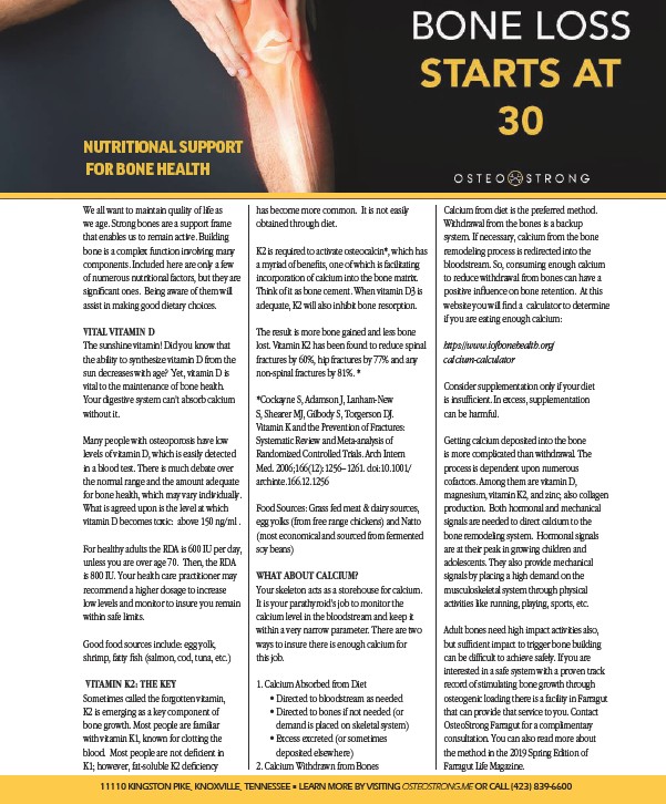 11110 KINGSTON PIKE, KNOXVILLE, TENNESSEE • LEARN MORE BY VISITING OSTEOSTRONG.ME OR CALL (423) 839-6600