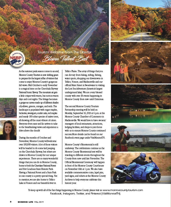 Facebook, Instagram, Twitter, and Pinterest (VisitMonroeTN).