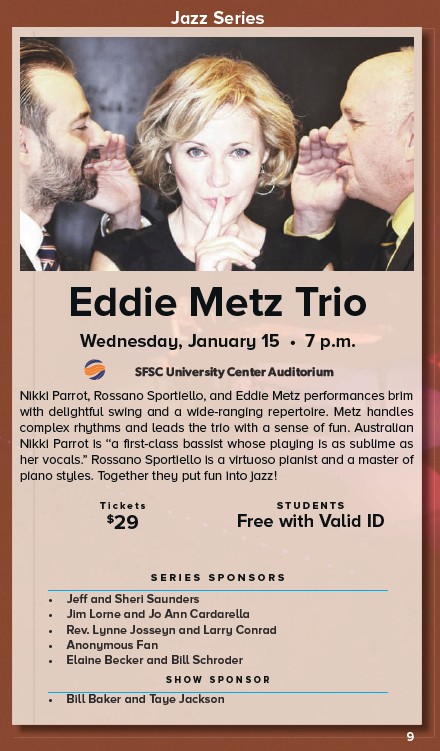 Nikki Parrot, Rossano Sportiello, and Eddie Metz performances brim