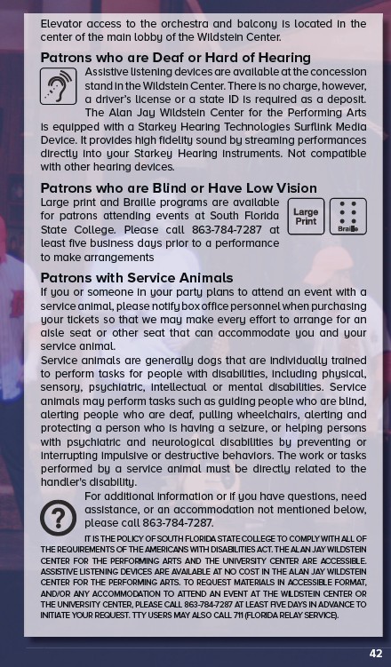 THE UNIVERSITY CENTER, PLEASE CALL 863-784-7287 AT LEAST FIVE DAYS IN ADVANCE TO