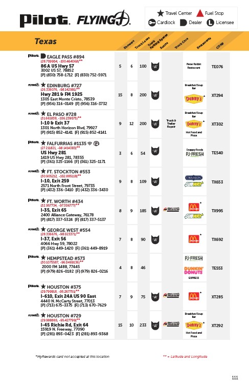 *MyRewards card not accepted at this location ** = Latitude and Longitude