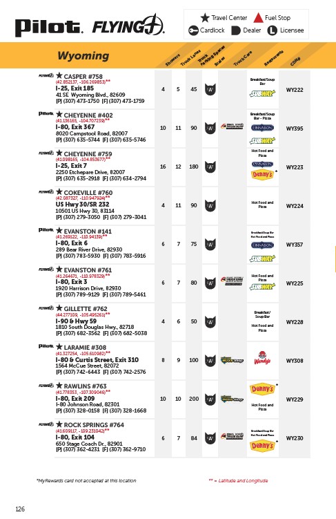 *MyRewards card not accepted at this location ** = Latitude and Longitude