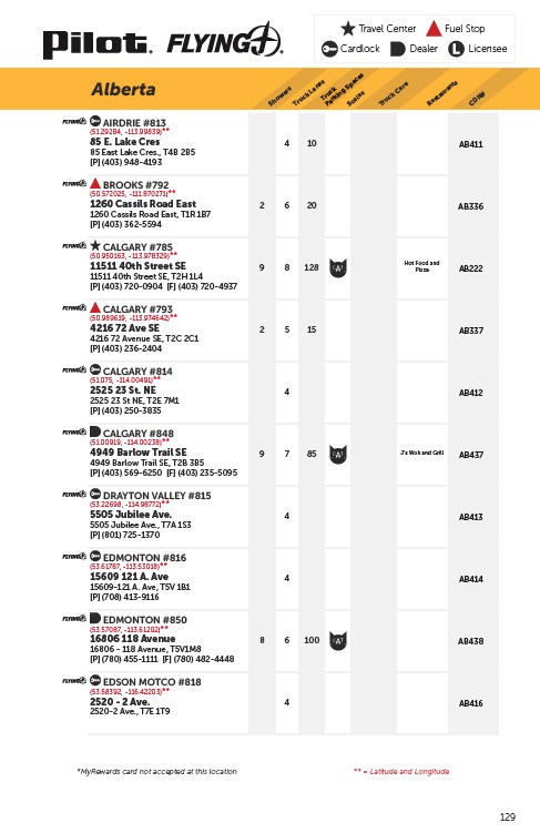 *MyRewards card not accepted at this location ** = Latitude and Longitude