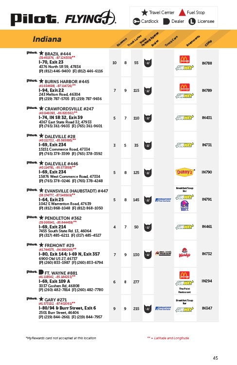 *MyRewards card not accepted at this location ** = Latitude and Longitude