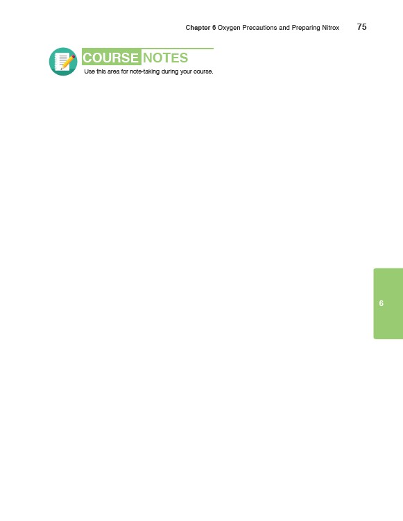 6 Chapter 6 Oxygen Precautions and Preparing Nitrox 75 COURSE NOTES Use this area for note-taking during your course.