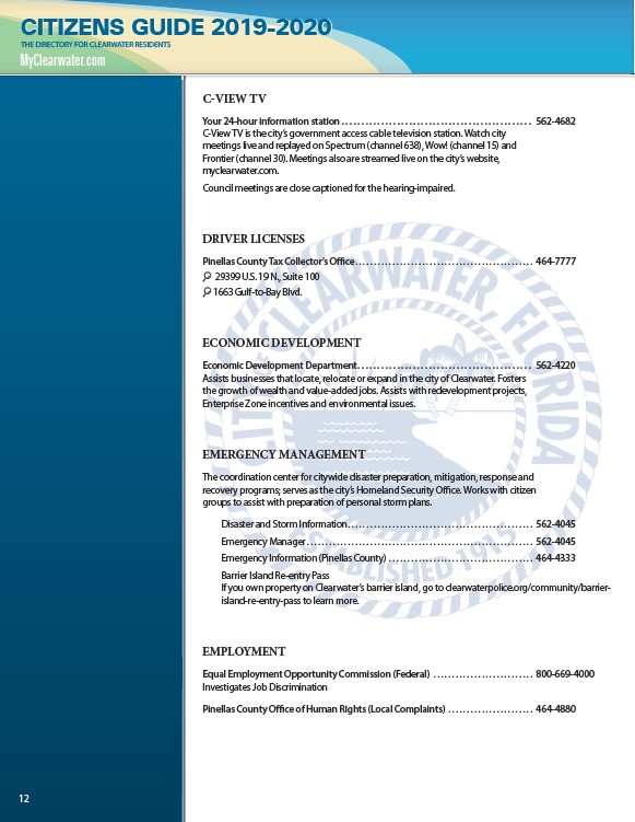 THE DIRECTORY FOR CLEARWATER RESIDENTS