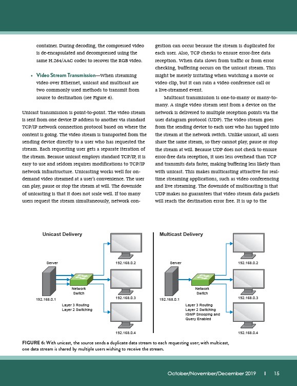 FIGURE 6: With unicast, the source sends a duplicate data stream to each requesting user; with multicast,