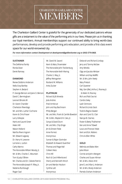 The Charleston Gaillard Center is grateful for the generosity of our dedicated patrons whose