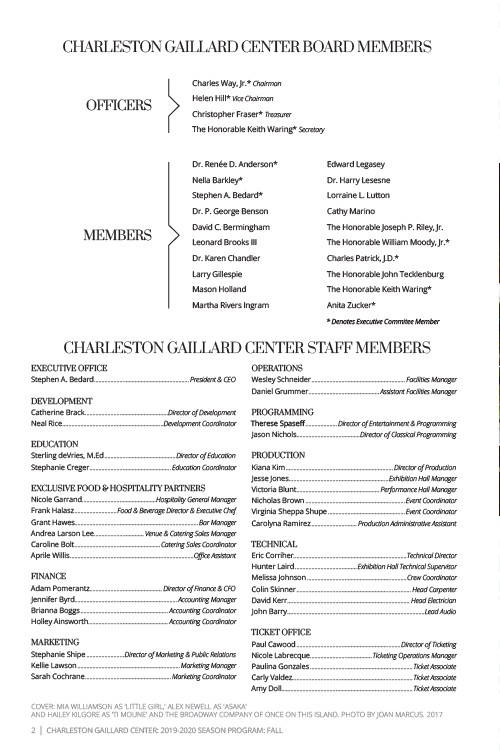 2 | CHARLESTON GAILLARD CENTER: 2019-2020 SEASON PROGRAM: FALL