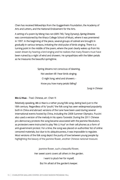 gradually in various tempos, imitating the vivid pulse of birds singing. There is a