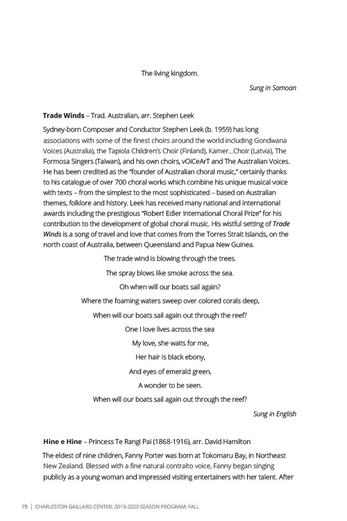 Winds is a song of travel and love that comes from the Torres Strait Islands, on the
