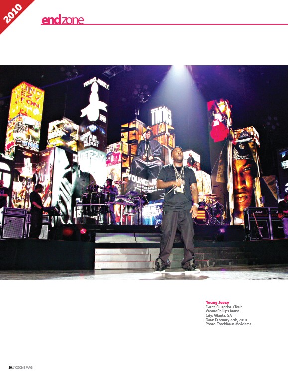 50 // OZONE MAG Young Jeezy Event: Blueprint 3 Tour Venue: Phillips Arena City: Atlanta, GA Date: February 27th, 2010 Photo: Thaddaeus McAdams end zone 2010