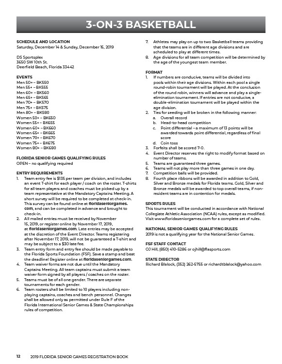12 2019 FLORIDA SENIOR GAMES REGISTRATION BOOK