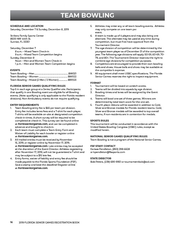 16 2019 FLORIDA SENIOR GAMES REGISTRATION BOOK