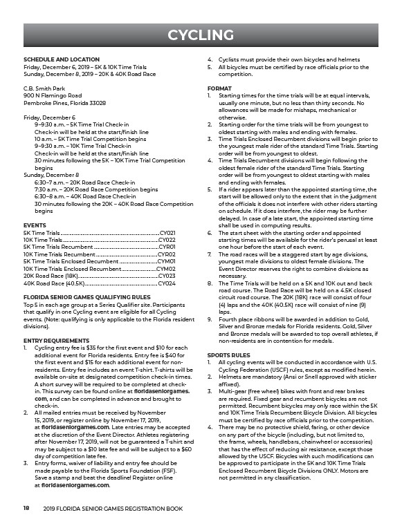 18 2019 FLORIDA SENIOR GAMES REGISTRATION BOOK