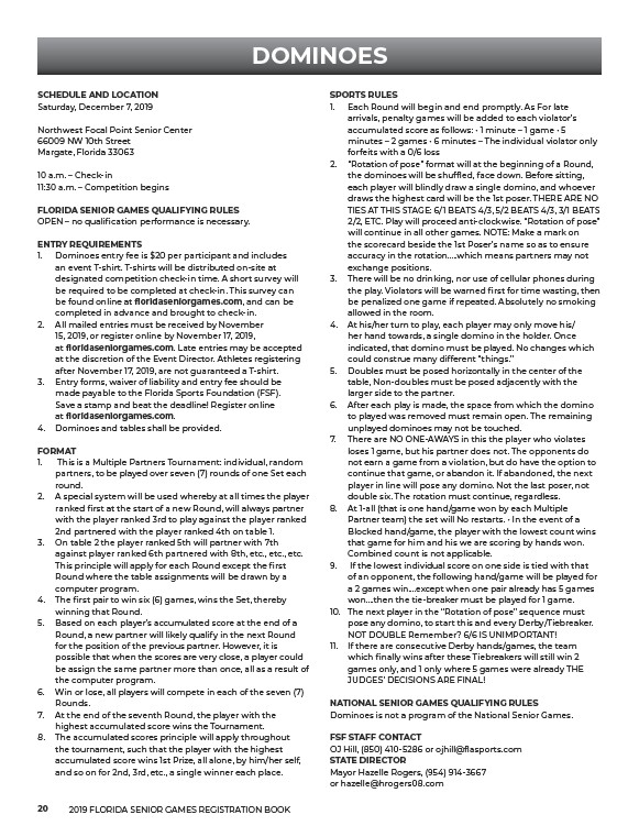 20 2019 FLORIDA SENIOR GAMES REGISTRATION BOOK