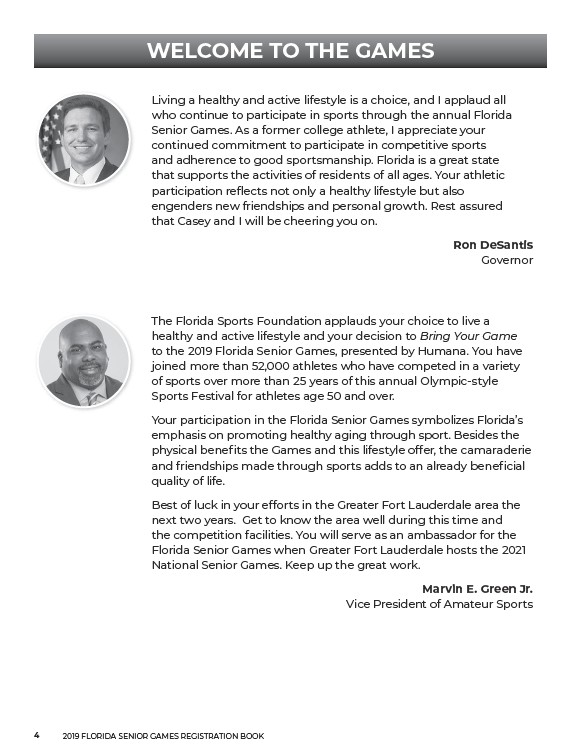 4 2019 FLORIDA SENIOR GAMES REGISTRATION BOOK
